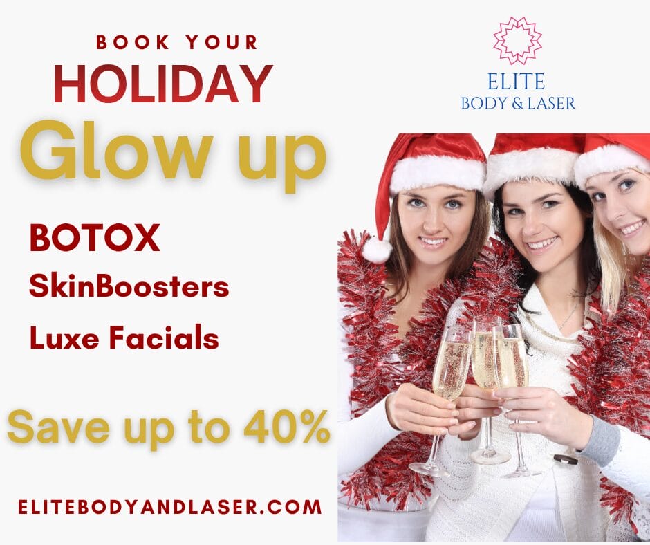 Book Your Holiday Glow Up today with BOTOX, SkinBoosters and Luxe Facials. Save up to 40% off with your combination package.